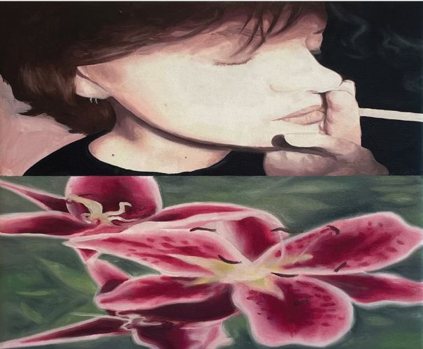 Mika Scheepsma vertaalt de drukke, soms absurde beeldcultuur van het internet naar het schilderij. Memes en online beelden haalt zij uit hun digitale context en maakt zij tastbaar op doek. Zo ontstaat afstand tot de vluchtigheid van het web en ruimte voor reflectie. Door zorgvuldig te kiezen, combineren en vertragen biedt ze een nieuw verhaal, waarin je opnieuw kunt kijken naar de stroom aan beelden die ons dagelijks overspoelt. En daarmee kan onderzoeken wat de invloed is van wat we online consumeren op hoe we ons verhouden tot onszelf en tot de ander.